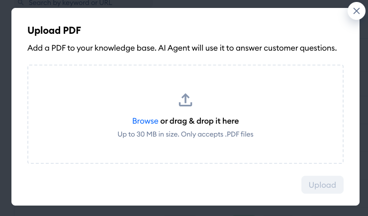 Use the Upload PDF option if you'd like to import knowledge from an existing PDF file.