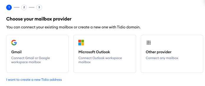 The first step to start receiving emails in your Tidio inbox is to connect at least one external mailbox. This mailbox can be something you've already been using for your customer support purposes, set up via Gmail, Outlook, or any other provider - or it can be a brand new address that you've just configured.