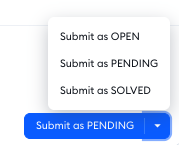 You have three different statuses to use when managing your tickets: Open, Pending, and Solved. You can select a new status whenever a change is necessary, but all new incoming tickets start out as open. A ticket is usually pending when you're awaiting a response, or when the ticket is simply not solved yet. You should mark the ticket as solved when no more communication is necessary in that particular thread.