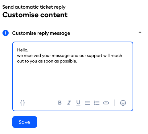 Whenever someone sends you an email, they can receive a pre-prepared automatic reply from your panel. To activate that, navigate to the Templates tab inside Settings > Workflows, and enable the Send automatic ticket reply template.