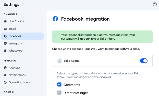 If you'd like to learn more about integrating Facebook Pages with your Tidio project, see this guide.