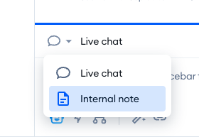 You will see the available options listed there: Live chat (for responding to the customer directly on chat) and Internal note (for leaving an internal note, invisible to the customer). Select Internal note from the menu: