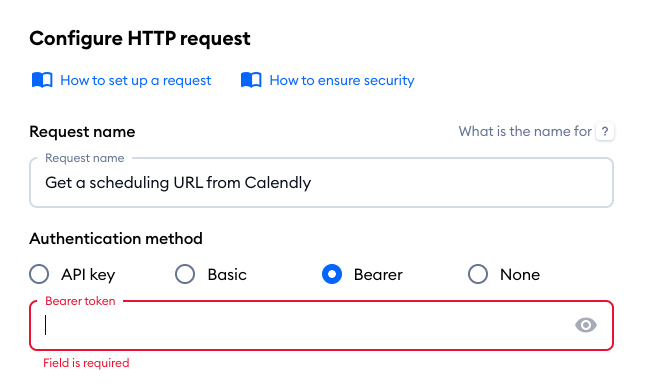 It is a security measure necessary for the integration. To get it, you need to go to your Calendly account, and in the Integrations & apps section - click on API and webhooks: