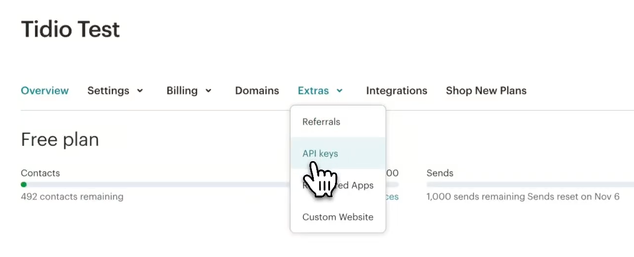 Inside, open the Extras menu and click on API keys: