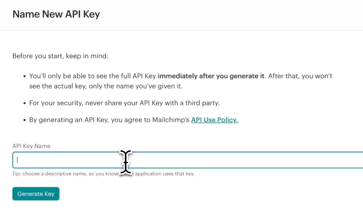 Name your new key, and hit the Generate Key button: