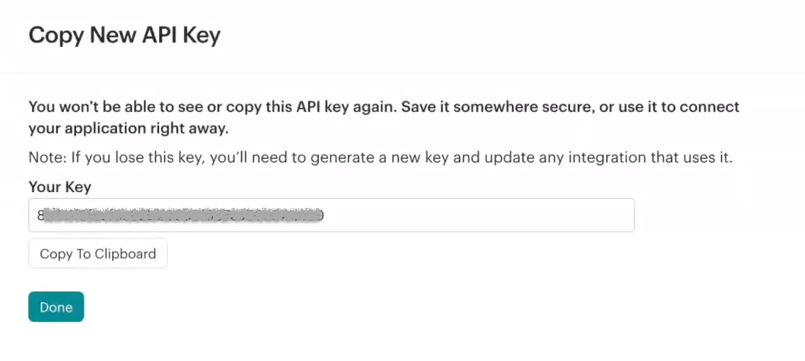You will now see your new API key. Copy it in full, using the dedicated button: