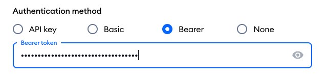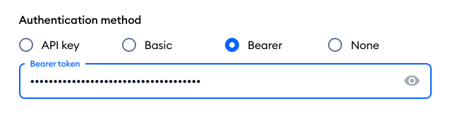 Back in your Tidio project's request editor, paste the token you've just copied into the Bearer token field: