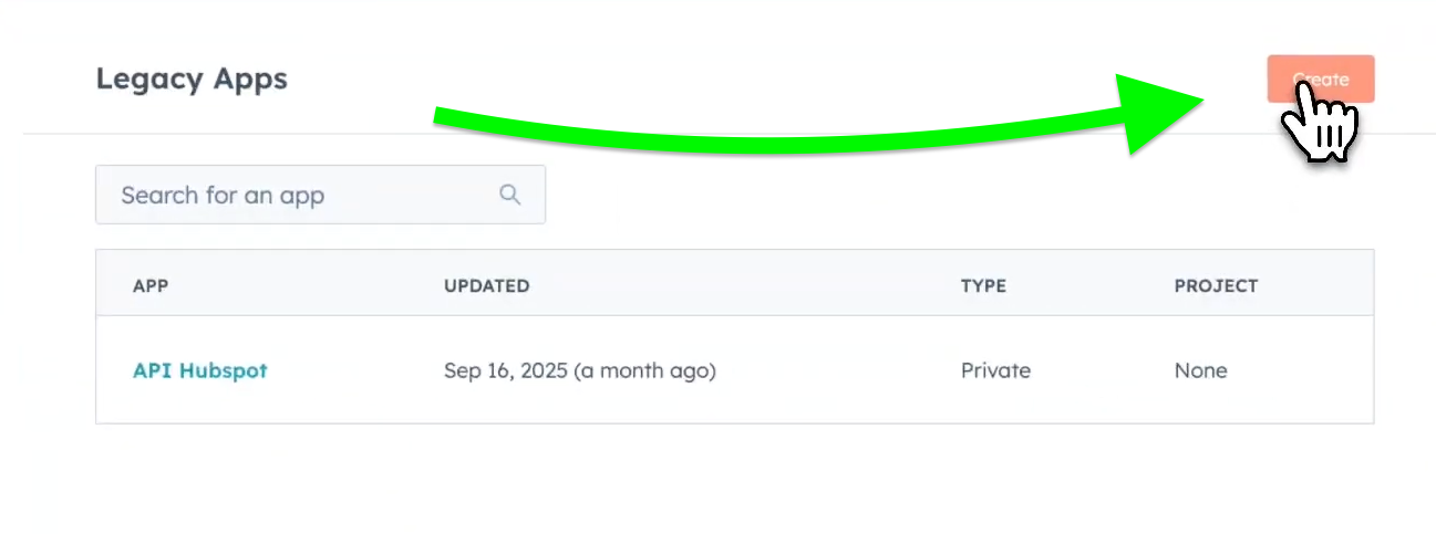 Next, hit the Create app button in the top-right: