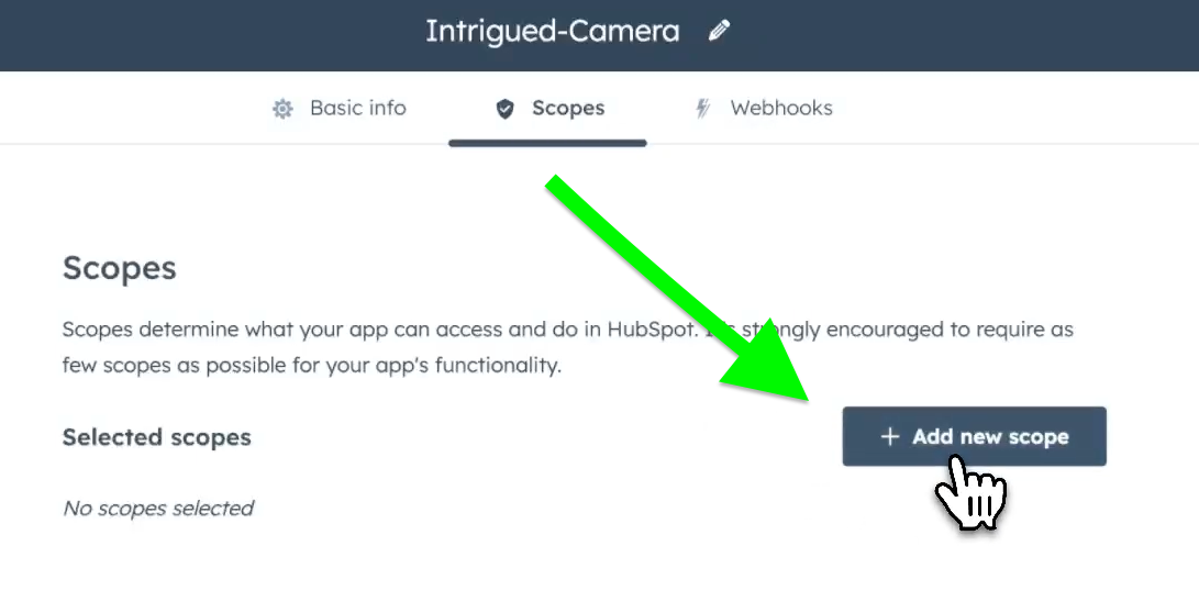 Go to the Scopes tab, and click the Add new scope button: