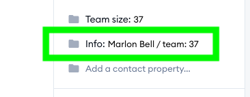 However, for the purposes of quick technical support, the project owner prefers to store all this information in just one Contact Property called 'Info' - where both the customer's name and team size are saved as a single value.