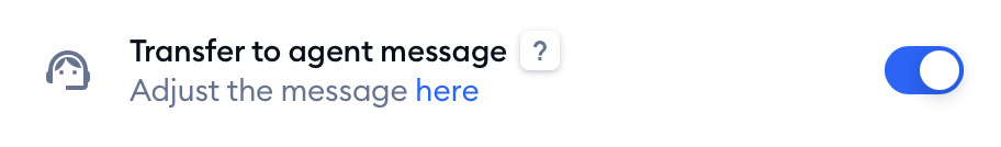 The Transfer to agent message can be triggered in specific chat transfer situations. It is disabled by default; if enabled, however, the conversation will be transferred to a human agent if the right conditions are met.